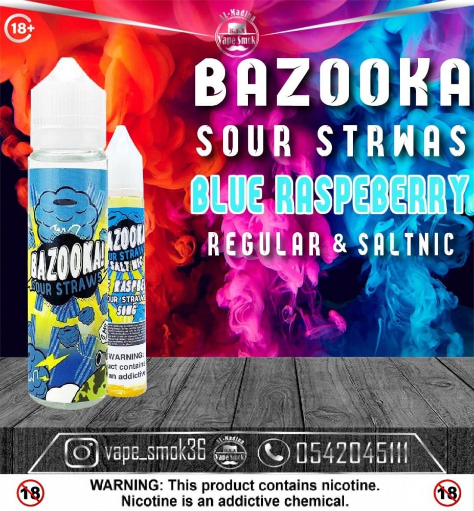 نكهة فيب بازوكا الشهيرة حلاوة التوت الأزرق السولت وفيب Bazooka Blue Raspberry Vape salt هي واحدة من النكهات الأكثر شهرة في عالم المدخنين الإلكترونيين. تأتي هذه النكهة