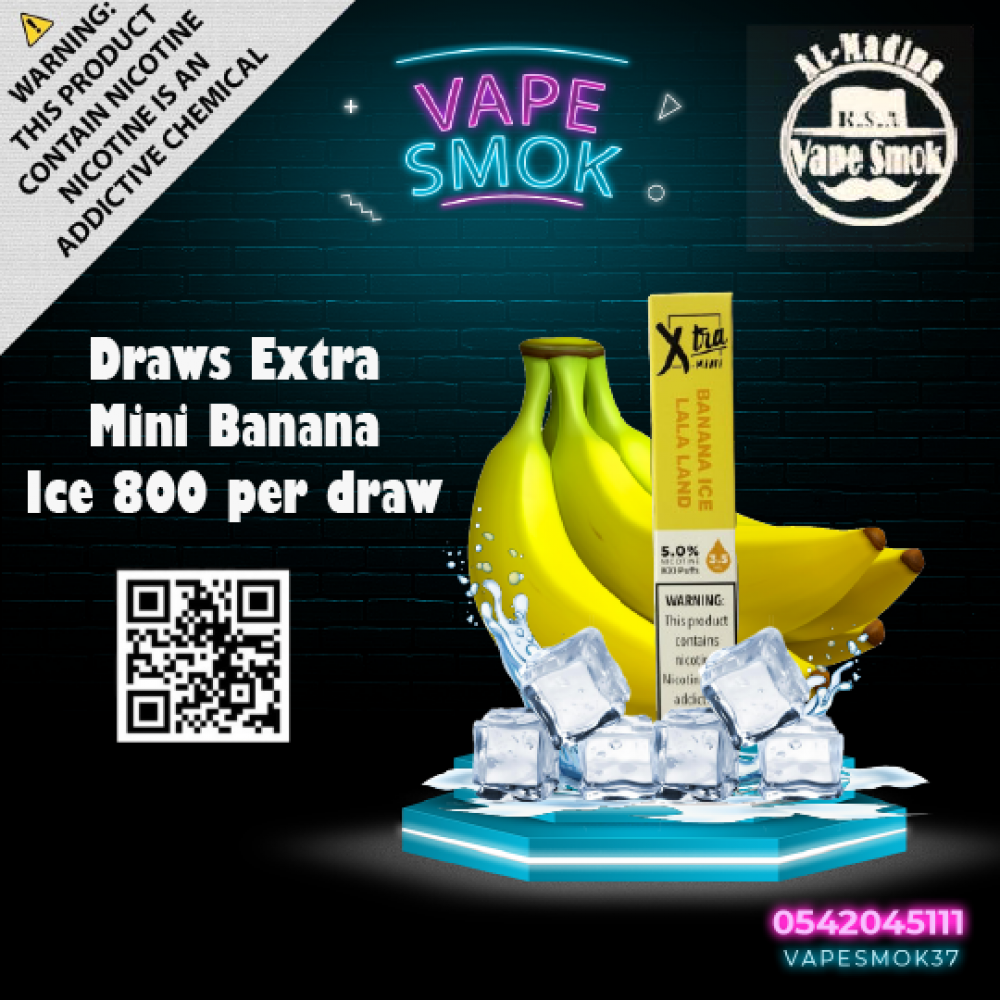 لا تضيع الفرصة لتجربة هذه النكهة الشهية والمنتج المبهر، واحصل على تجربة فريدة وممتعة مع سحبات اكسترا ميني نكة الموز ايس800 سحبة الواحد!