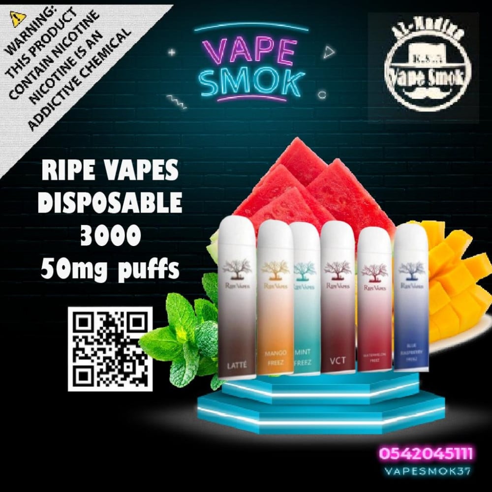 وتأتي بقوة 3000 سحبة بنكهة RIPE VAPES DISPOSABLE