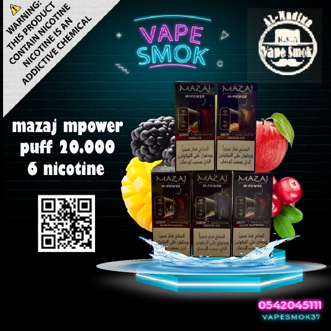 • Mazaj SS 20000 – نيكوتين 50 مجم، سحبة قوية، نكهة مكثفة