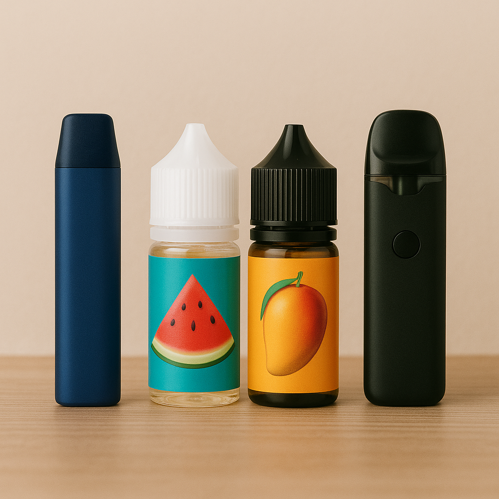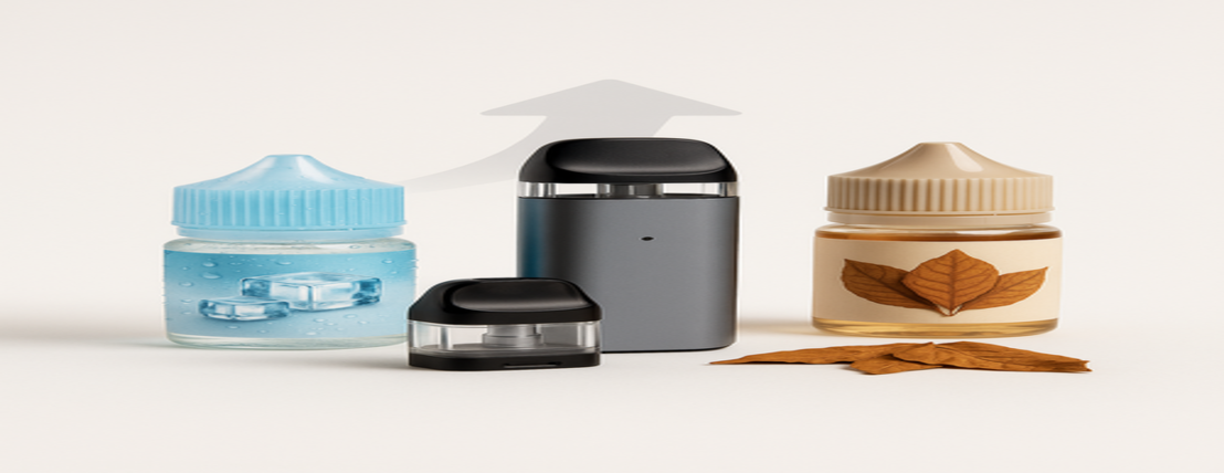 اختر اعتمادًا على ذوقك بالنكهات، نوع جهازك، ونسبة النيكوتين التي تناسبك.