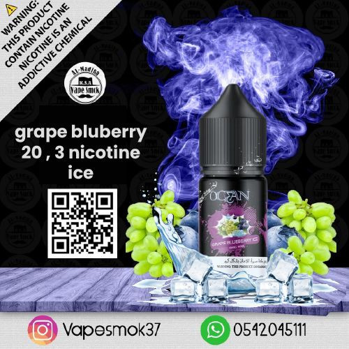إذا كنت من مدخني السولت، فلن تقاوم نكهة أوشن بنكهة عنب توت أزرق ايس! فهي تقدم لك تجربة فريدة ومنعشة تأخذك إلى أعماق المحيطات. تحتوي على نكوتين بقوة 20 ملغم،