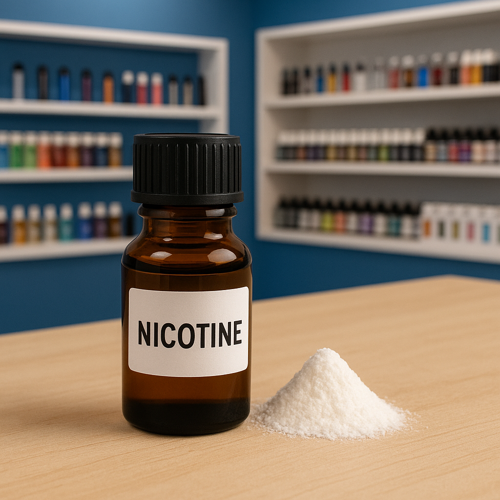- Nicotine – either extracted from tobacco or synthesized