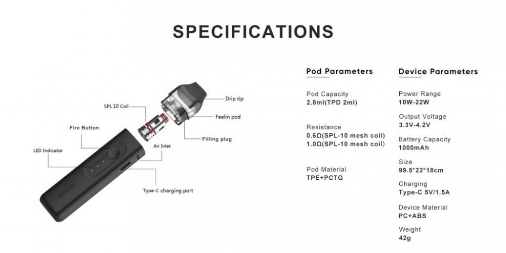 Feelin 22W Pod System, which has a built-in long-lasting 1000mAh battery, 3-level variable voltage, and holds up to 2.8ml. Dual ways airflow adjustment is designed which satisfies both MTL or semi DL. Feelin operates on a dual firing system, and supports button triggering or graphic firing, providing users with more flexibility. Equipped with a fast charging bottom USB Type C port that will reduce the time taken to charge. In addition, Feelin provides you safe and comfortable vaping experience with TPE mouthpiece.