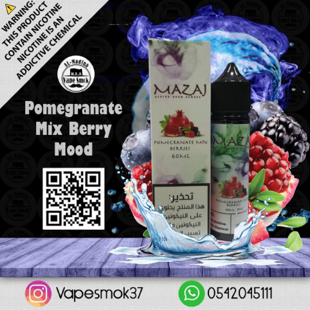 For every lover of pomegranate flavor and delicious berries, Mazaj pomegranate mix berries is the ideal choice for you to enjoy a wonderful and refreshing vape experience that takes you to the world of dreams with refreshing vape flavors.