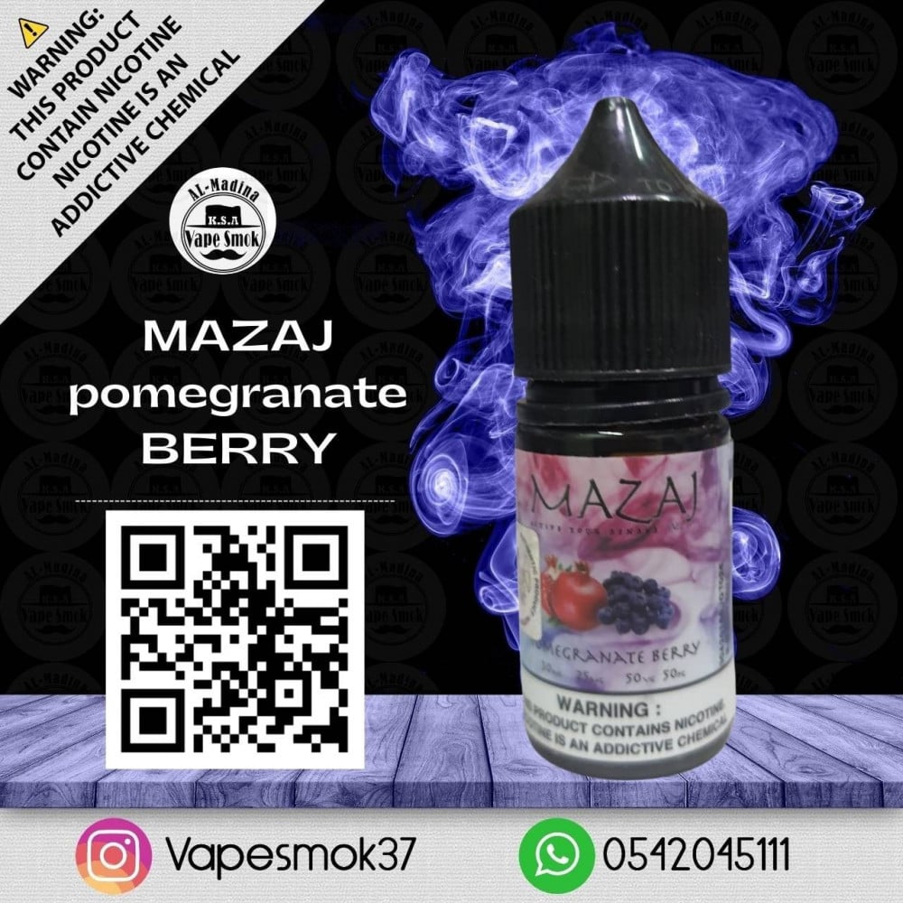Mazaj offers the authentic taste of classic hookah flavors in the form of e juice, Berry Pomegranate from Mazaj. We offer the taste of sweet pomegranate juice with crisp berries, lightly blended with The original salt flavors are dosed high for a luxurious electronic hookah smoke.