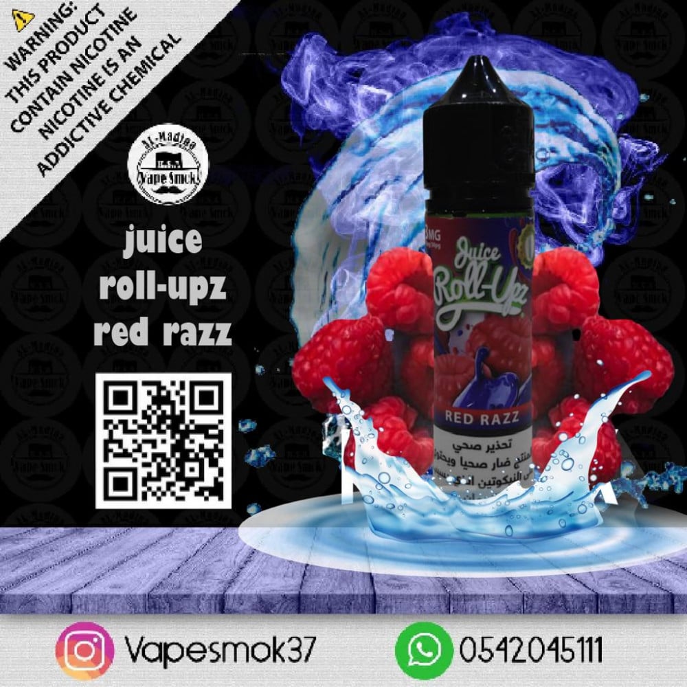 Roll Upz Red Razz Salt Flavor - Roll Upz Red Razz is an electronic vape flavor in a 60ml bottle produced by the famous Roll Upz vape flavor company. Taste the refreshing and delicious red raspberry flavor that will make you never be able to do without it again. This electronic hookah is used with an electronic vaping device only. Roll Upz flavors are characterized by a beautiful aroma that leaves your mouth smelling fresh throughout the period of use.